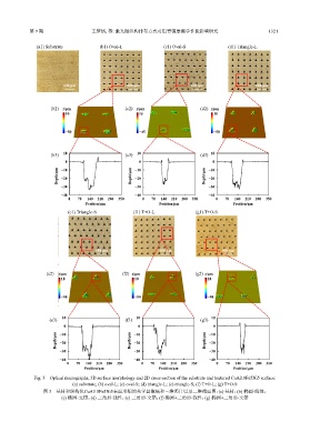 图 3 基材和织构化CuAl10Fe5Ni5表面形貌的光学显微镜和三维照片以及二维截面图:(a) 基材;(b) 椭圆-线性;