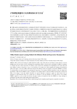 英文引用格式: Liu Q, Yan J, Wu L. Offline Reinforcement Learning Method with Diffusion Model and Expectation Maximization.