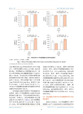 著高于 MA 组,但益生菌配方饲料对雌蟹肝胰 EUC 值分别为 11.44、17.84 g MSG/100g。PFF