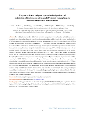 Key words: Hyriopsis cumingii; temperature; ration level; digestion; metabolism