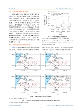 图。春季,口虾蛄主要分布于北麂岛以东海域, 源密度为 0 kg/km ;呈现明显的水深分布模式。