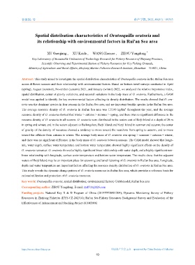 Key words: Oratosquilla oratoria; spatial distribution; environmental factors; GAM model; Rui'an Sea area