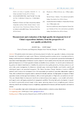 quality development level of China's aquaculture industry and identifies its key constraints. The aim is to provide decision-mak-