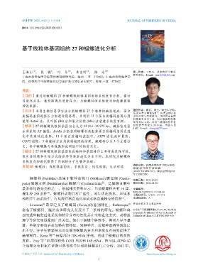 【结果】27 种蜒螺线粒体基因组全长为 15 261~15 975 bp。碱基信息显 份发表学术论文 20 多篇,出版专著