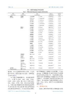 为 60.0% (图 2)。 TAA 作为终止密码子外,其余物种的 ND2、