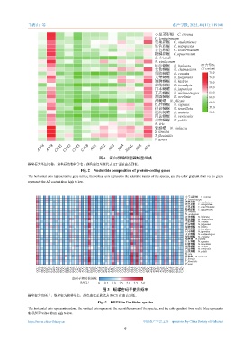 横坐标为基因名称,纵坐标为物种学名,颜色由红至绿代表 AT 含量由高到低。