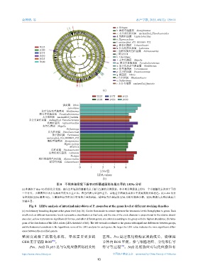 and the horizontal coordinate is the logarithmic score of the LDA analysis for each genus; the larger the LDA value indicates the more significant differ-