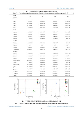 Fig. 3 The PCA scores of fatty acids in the hepatopancreas (a) and muscle (b) of different groups