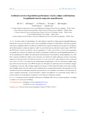 acid) butylene terephthalate (PBAT) monofilament and PBAT/starch composite monofilament were prepared by melt spinning,