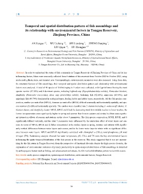 Key words: catch; species composition; spatiotemporal distribution; environmental factors; Tangpu Reservoir