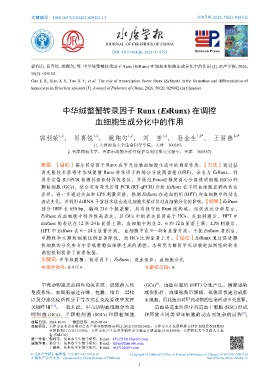 表达变化。并利用 dsRNA 干扰技术结合流式细胞术探讨其对血细胞分化的影响。 【结果】EsRunx