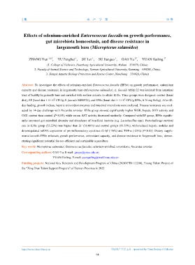 Key words: Micropterus salmoides; Enterococcus faecalis; selenium-enriched; sarcoidosis; Nocardia seriolae