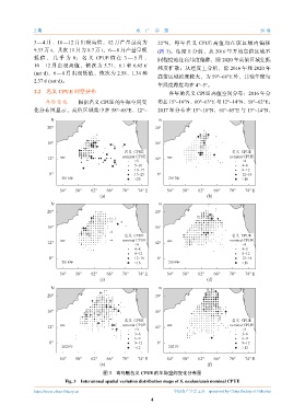 9.33 万 t,其次 11 月为 8.7 万 t,6—8 月产量呈现 (图 3)。纬度上分析,从 2016 年开始高值区域不