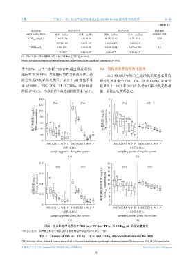 著 (P>0.05),TSS、TN、TP 和 COD M n 含量显著 化见图 2,2022 和 2023 年各指标沿程变化趋势相