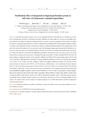 the industry’s long-term ecological balance. In order to understand the purification effect of the integrated ecological purifica-