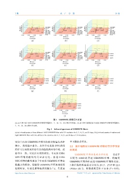 (a)~(e) 3 种不同 1600D UHMWPE 纤维紫外辐照 0、7、14、21、28 d 的红外光谱,(f)~(j) 3 种不同线密度中高强 UHMWPE 纤维紫外辐照 0、