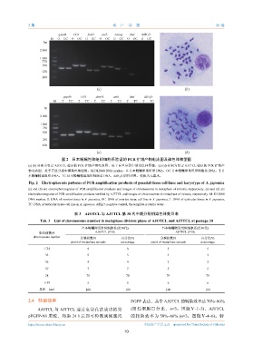 Fig. 2 Electrophoresis patterns of PCR amplification products of gonadal tissue cell lines and karyotype of A. japonica
