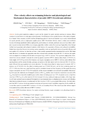 Key words: GIFT Oreochromis niloticus; flow speed; swimming behavior; oxygen consumption rate; physiological and bio-