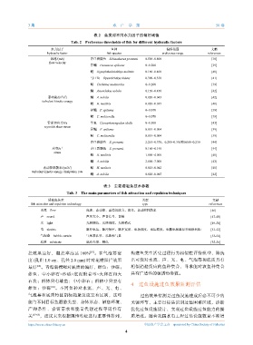 表 2 鱼类对不同水力因子的偏好阈值
