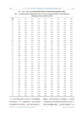 Tab. 3 Evaluation index standardization values of resources and environmental carrying capacity of