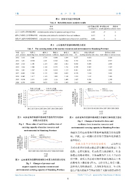 Tab. 5 The carrying status of the marine resources and environment in Shandong Province