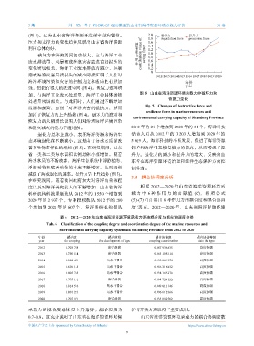 加,与海洋工业废水处理量、海洋工业固体废物 图 5 山东省海洋资源环境承载力中破坏力和