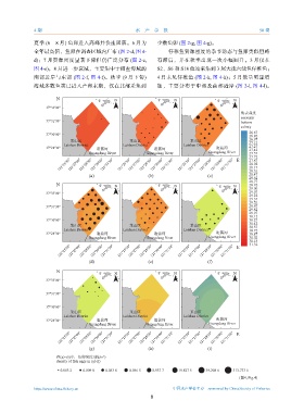 南部近岸与东部 (图 2-f, 图 4-f)。秋季 (9 月下旬) 4 月未见仔稚鱼 (图 2-k, 图 4-k);5 月数量明显增