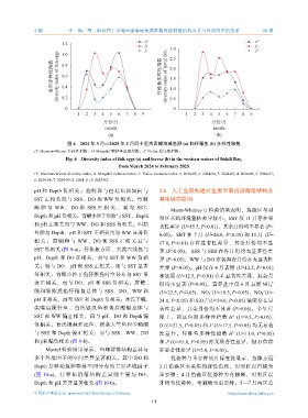 SST 和 WW 偏正相关,而与 pH、DO 和 Depth 偏 度上,两区鱼卵多样性指数 H′ (U=9.5, P>0.05)、