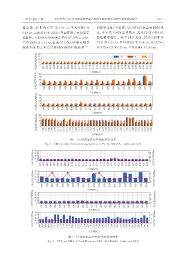 平均 RMS 为 2.13 ns,造成 GLONASS 钟差精度 STD 为 0.21 ns,平 均 RMS 为 1.04 ns,而 BDS-3