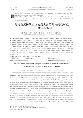 引文格式:李昊宇,许强,李品良,等 . 降雨数据稀缺山区地质灾害的降雨阈值研究——以茂县为例[J]. 武汉大学学报(信息科