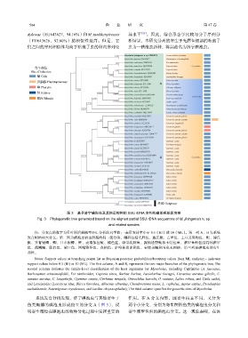 注:分支点的数字为贝叶斯后验概率/ML 分析的自举值;-表示支持率小于 0.5(BI)或 50(ML) 。第一列 A、B 为系统