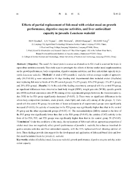 Key words: cricket (Gryllulus) meal; Leuciscus waleckii; growth performance; digestive enzyme activity; antio-