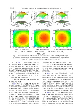 综合分析图 8 中三组响应曲面与等高线图可 高于酶解温度,即加酶量在该交互作用中贡献更