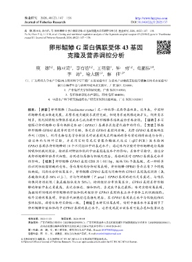 卵形鲳鲹 GPR43 基因序列设计引物,鉴定出 GPR43 基因同源物,克隆 GPR43 基因编码区