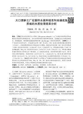 关键词:大口黑鲈;苗种培育;成鱼养殖;水质调控;水质处理效率