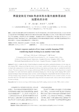 阻尼 TMD 地震响应。研究结果表明:较大地震激励下,考虑液体晃动作用后的两级变阻尼 TMD 振幅、最大阻尼力更大,并且