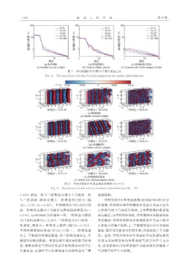 示上、下鞍面的反相涡脱落,第三阶模态表示上、下 动。显然,串列类圆柱杆件尾迹内不同涡旋结构的