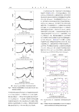 传递率 幅值为 0.2 和 0.4 m/s r.m.s.时有所增加,在振动幅值
