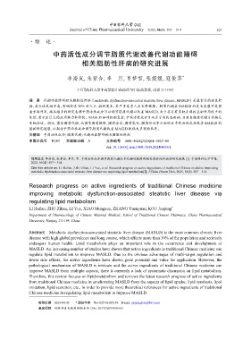 引用本文 李海岚,朱紫含,李月,等. 中药活性成分调节脂质代谢改善代谢功能障碍相关脂肪性肝病的研究进展 [J]. 中国药科大学学报,