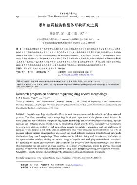 引用本文 任怡霏,苏媛,蔡挺. 添加剂调控药物晶体形貌研究进展 [J]. 中国药科大学学报,2025,56(4):524 − 530.