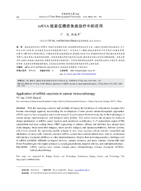 引用本文 于晶,杨振军. mRNA 疫苗在癌症免疫治疗中的应用 [J]. 中国药科大学学报,2025,56(4):444 − 452.
