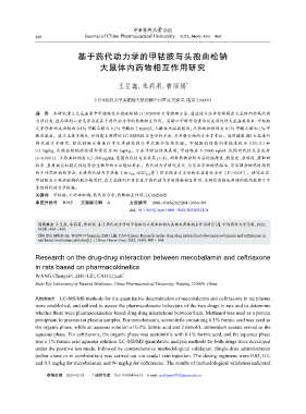 关键词 甲钴胺;头孢曲松钠;药代动力学;药物相互作用;LC-MS/MS