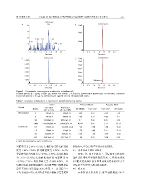 甲钴胺的批内准确度为−0.95%~4.89%,批间准确度 在低、中、高 3 个浓度下,甲钴胺和头孢曲松