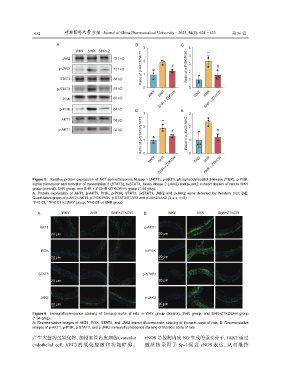 images of p-AKT1, p-PI3K, p-STAT3, and p-JAK2 immunofluorescence staining of thoracic aorta of rats