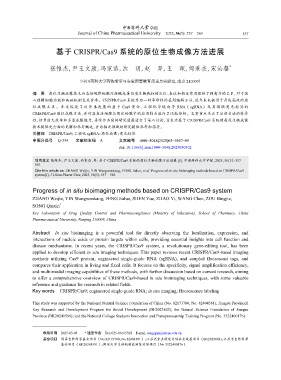 引用本文 张惟杰,尹王文康,冯家洛,等. 基于 CRISPR/Cas9 系统的原位生物成像方法进展 [J]. 中国药科大学学报,2025,56(5):557 −