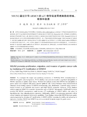 引用本文 李越,陈栋,王瑾,等. NSUN2 通过介导 ARMC9 的 m C 5 修饰促进胃癌细胞的增殖、转移和侵袭 [J]. 中国药科大学学报,2025,