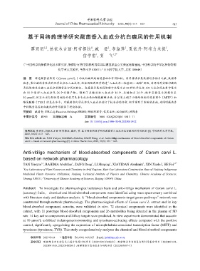 检索,鉴定藏茴香果实的化学成分和入血成分,结合网络药理学构建“入血成分—靶基因— 通路”网络,利用体外实验对藏茴