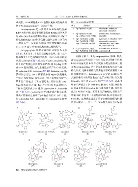 联,如 scabrirubin(图 7-A)、microflactin、strecintide 等; atropopeptides 的交联不仅更为复杂,同时在所有