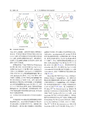 C–C 交联,这两种交联都不是形成另一种交联的先 序 , 该 类 型 RiPP 通 常 在 Tyr 和 Trp 残 基 间 形 成