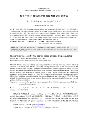 引用本文 张靖,李德鹏,喻彬,等. 基于 STING 激动剂抗体偶联药物的研究进展 [J]. 中国药科大学学报,2026,57(1):19-27.